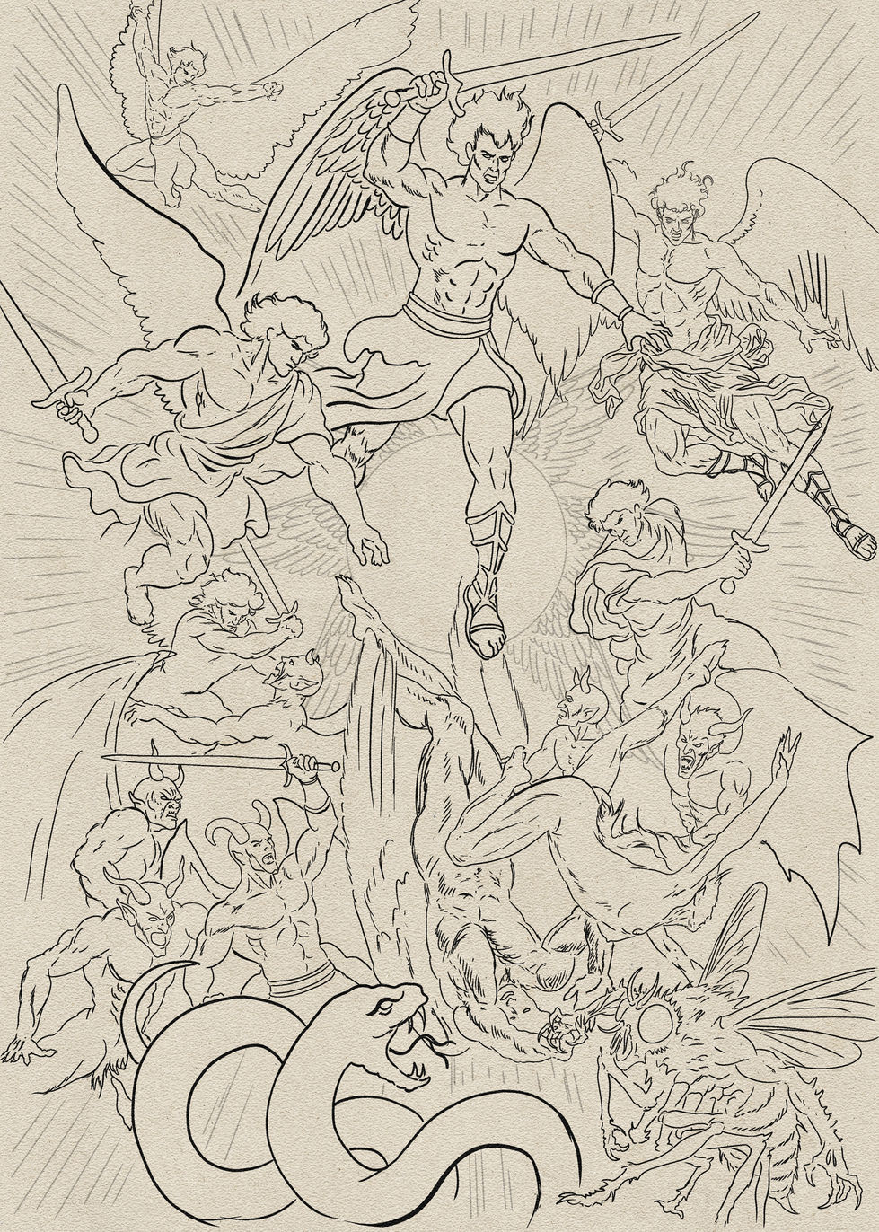 This is a painting commissioned by the Dark Entity Group team for the rulebook cover of their upcoming RPG. I don't have any further details about the project other than that it will be based on Christianity, but it's an excellent game coming. I hope you enjoy it.